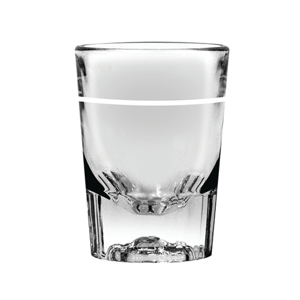 A classic shot glass is a bar essential. This 2 oz. shot glass with a weighted base and 1 oz. pour line is an ideal barware accessory for straight shots, measuring spirits, and more.