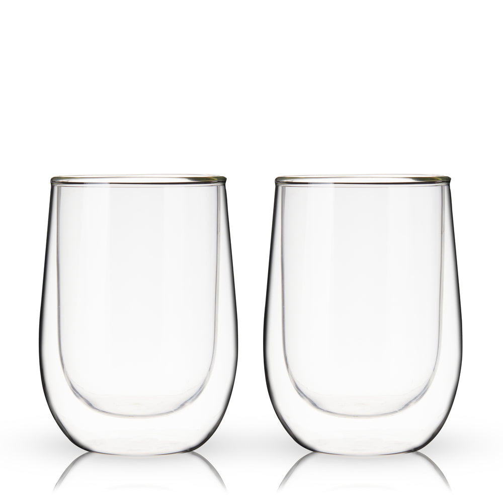 Double Walled 10 oz Stemless Wine Glasses, Set of 2