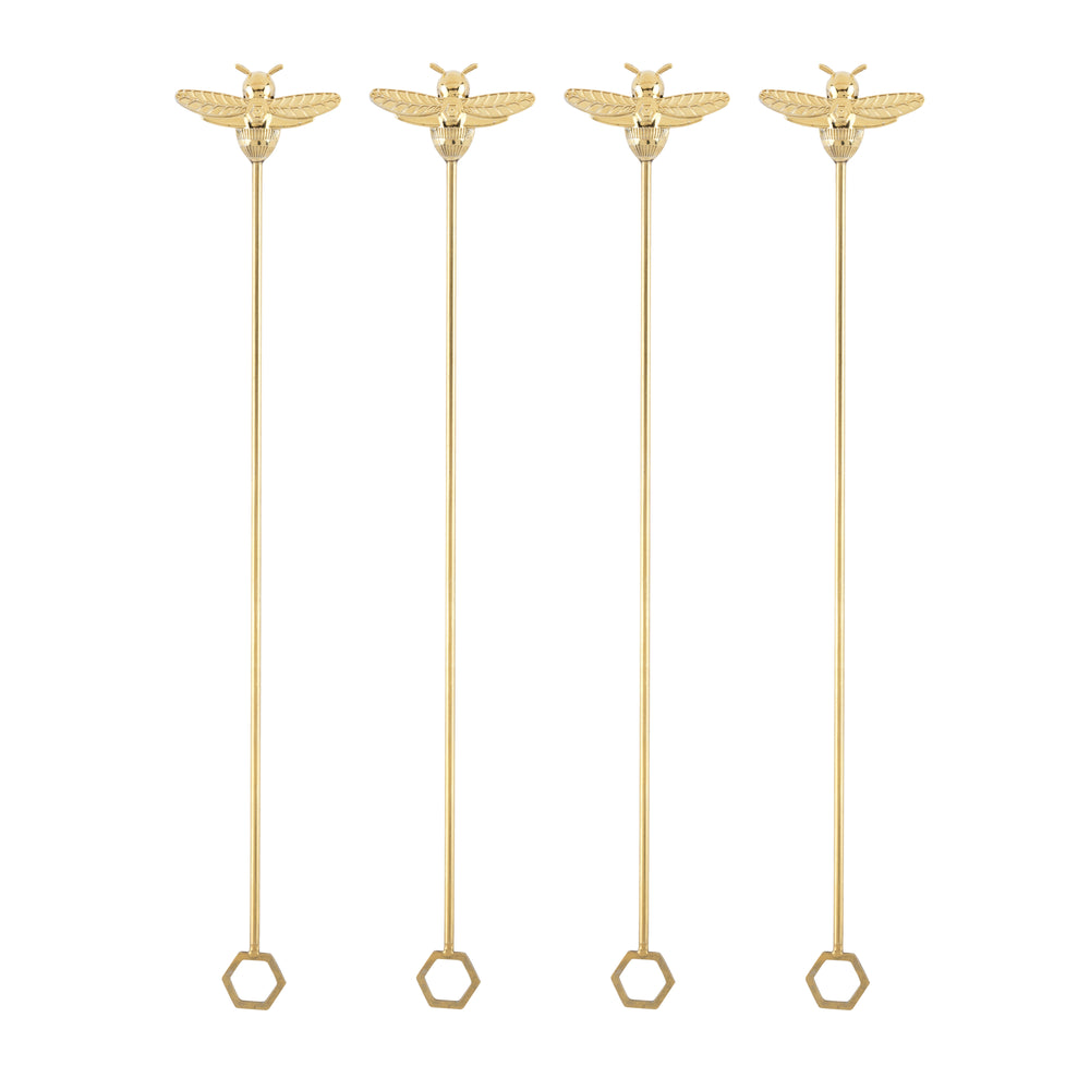 Accent sumptuous beverages with understated elegance brought to dazzling reality through this collection of bee stir sticks. Golden plating sheaths durable stainless steel, creating a buzzworthy effect.