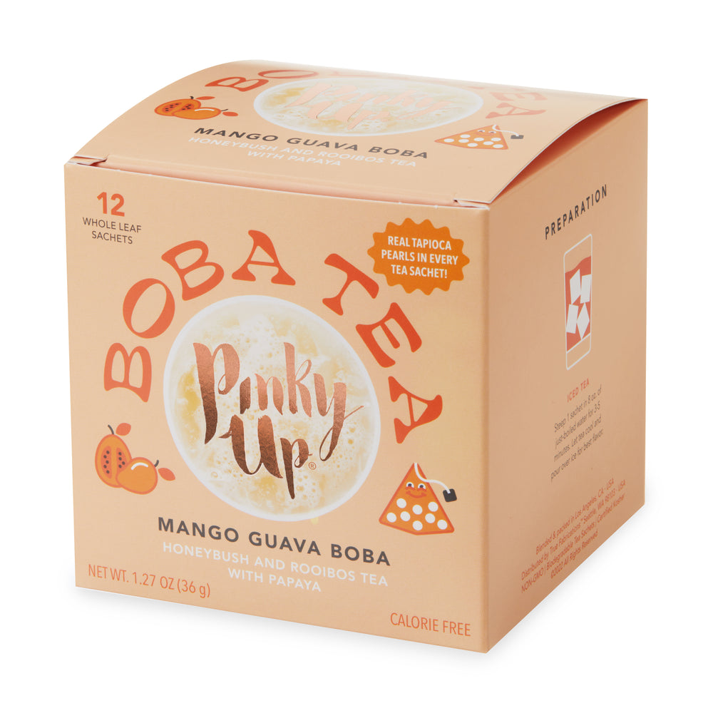 All the indulgence of your favorite boba tea, none of the guilt! Our Mango Guava Boba whole leaf blend combines earthy honeybush and rooibos tea with a cornucopia of tropical mango, papaya, guava, and real tapioca pearls that brings all the indulgence of a boba stop, guilt free.