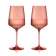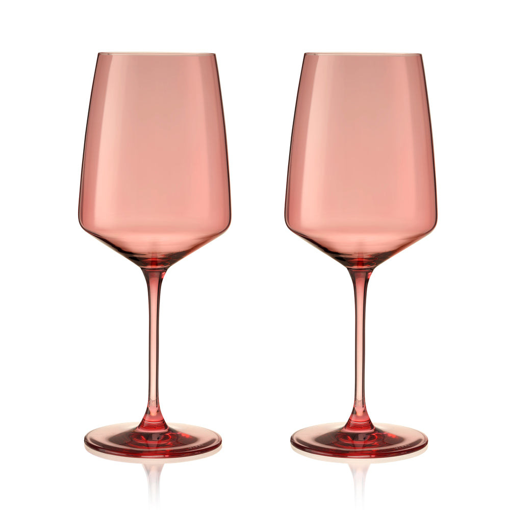 Savor your wine from a pastel perspective. Crafted from European crystal, these stemmed wine glasses have a modern, angled silhouette with elegant stems and a delicate coral hue.