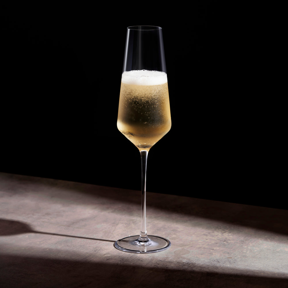 The finest possible line between you and the wine: vessels so perfectly crafted that they fade into the background, letting the flavors and aromatics take center stage. Noticeably thinner and lighter than traditional glassware, these crystal champagne flutes have a narrow silhouette that prolongs effervescence and tall stems to help maintain the ideal temperature of your sparkling wine.