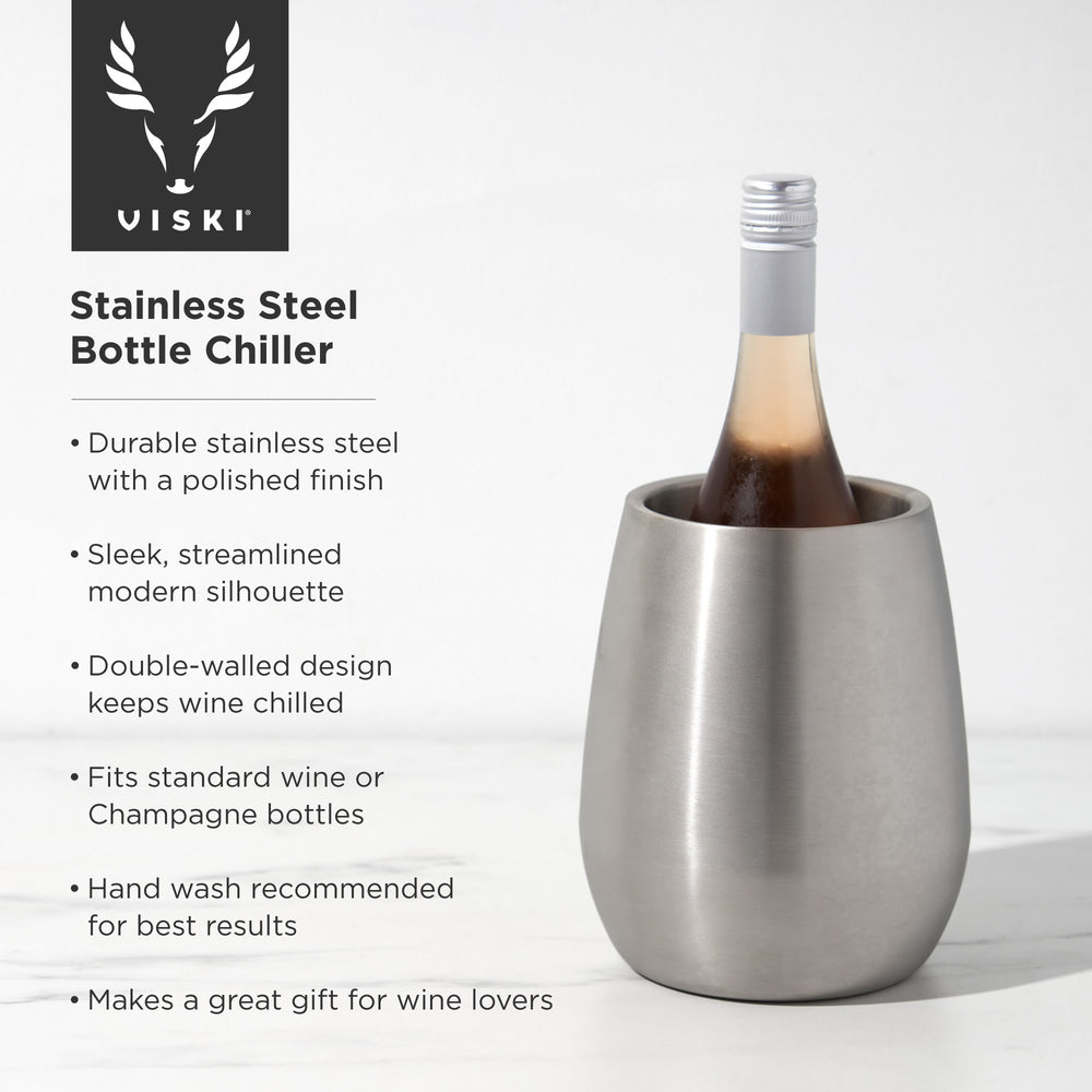 A bottle holder does not have to be ostentatious to be alluring. Our stainless steel bottle chiller is smoothly contoured and double-walled to keep white wine or champagne frosty until you're ready to pop the cork.
