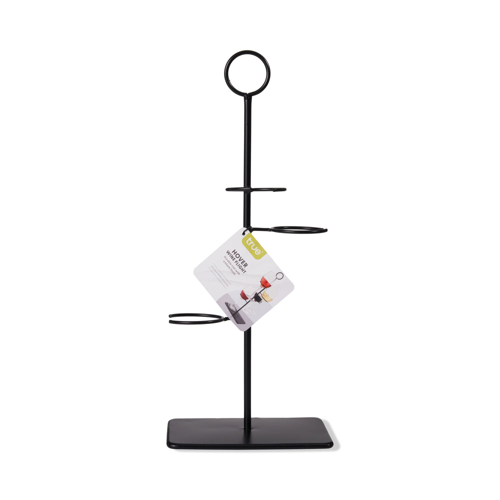 A slender shoot of iron and four circular boughs come together to promote this wine flight from an average drink accessory to a luxury piece. Each of the four rings holds one glass of your signature Chardonnay or Bordeaux, while a loop at the top ensures easy transport from cellar to tasting room.