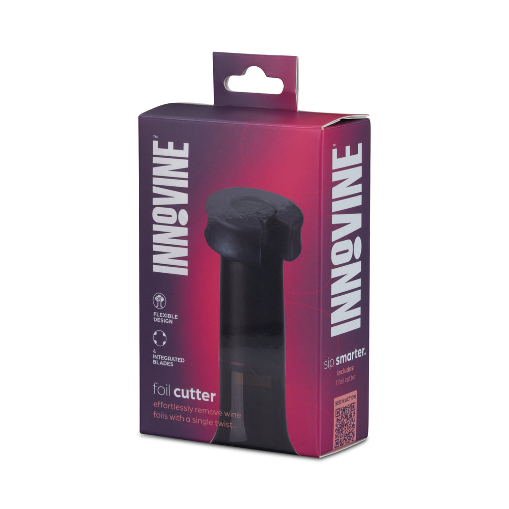 Experience effortless wine opening with the Innovine Foil Cutter, expertly designed for clean and precise foil removal. Featuring a non-slip flex grip for secure handling and four integrated blades for a smooth cut, this compact cutter delivers mess-free performance with a simple twist. Its all-in-one construction ensures reliability and easy storage.