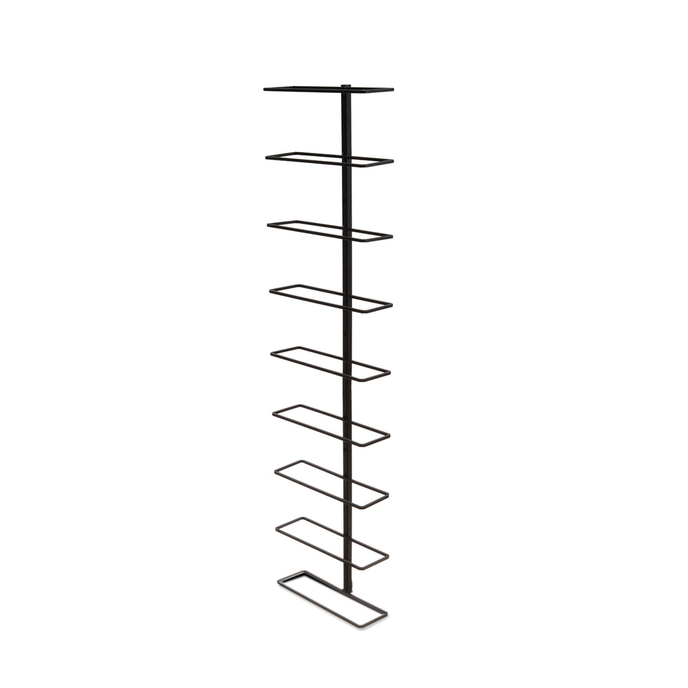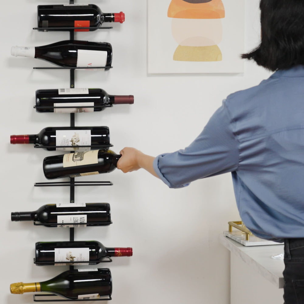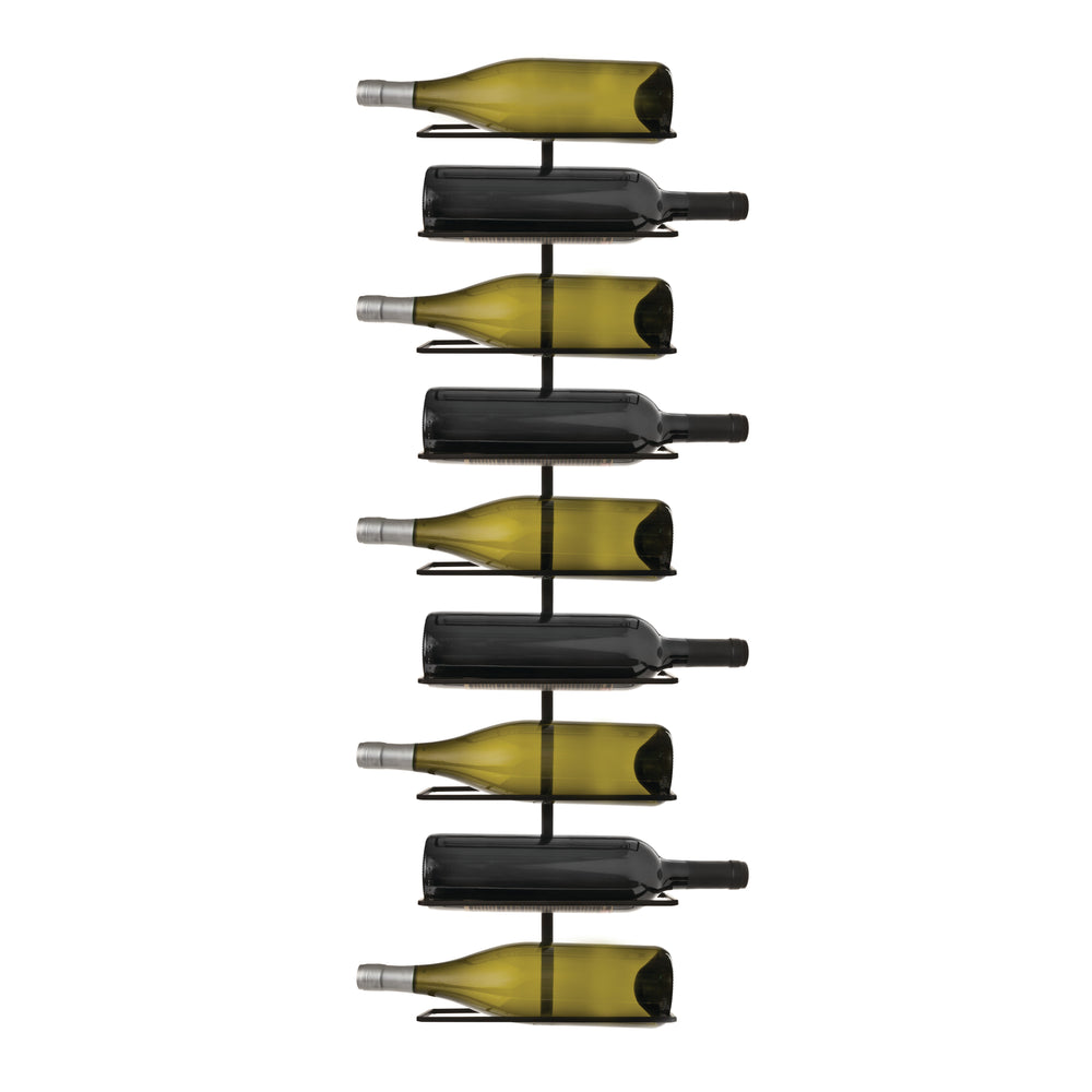 Simple and streamlined, the Align Wall-Mounted Wine Rack is crafted from black wrought iron to display nine red, white or sparkling wines in perfect vertical alignment on any wall. The modern minimalism of the frame puts maximum emphasis on bottles and labels. Kit includes screws for easy installation.