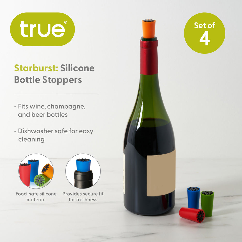 Starburst Silicone Bottle Stopper in Assorted Colors, Set of 4