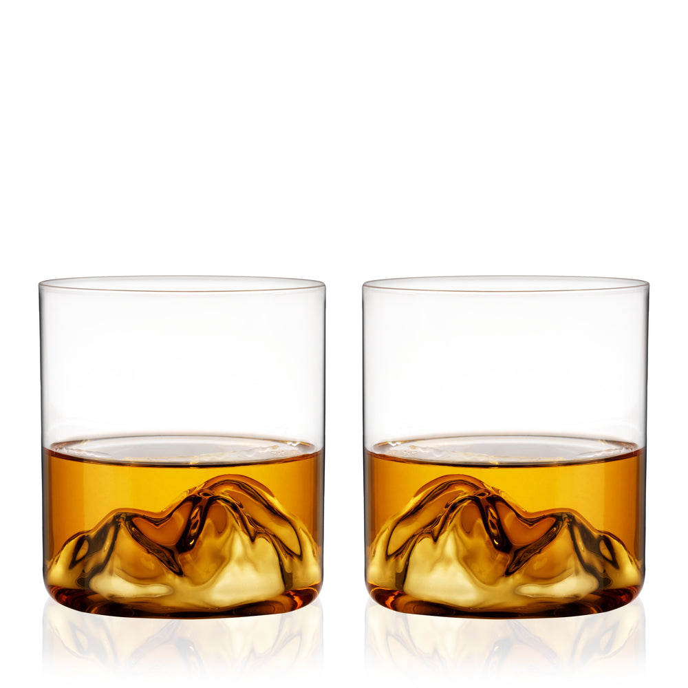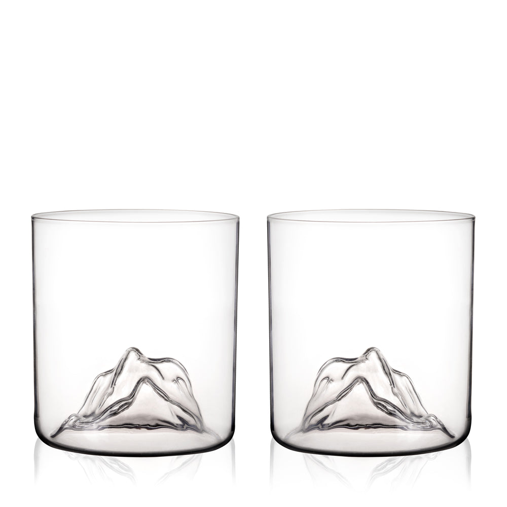 Swirl your liquor around the craggy mountain nestled at the base of these unique glasses. These crystal tumblers pay homage to the lofty peaks of the Pacific Northwest with hand-blown, dimensional mountains that rise up in your glass. This handmade item may exhibit slight variations.