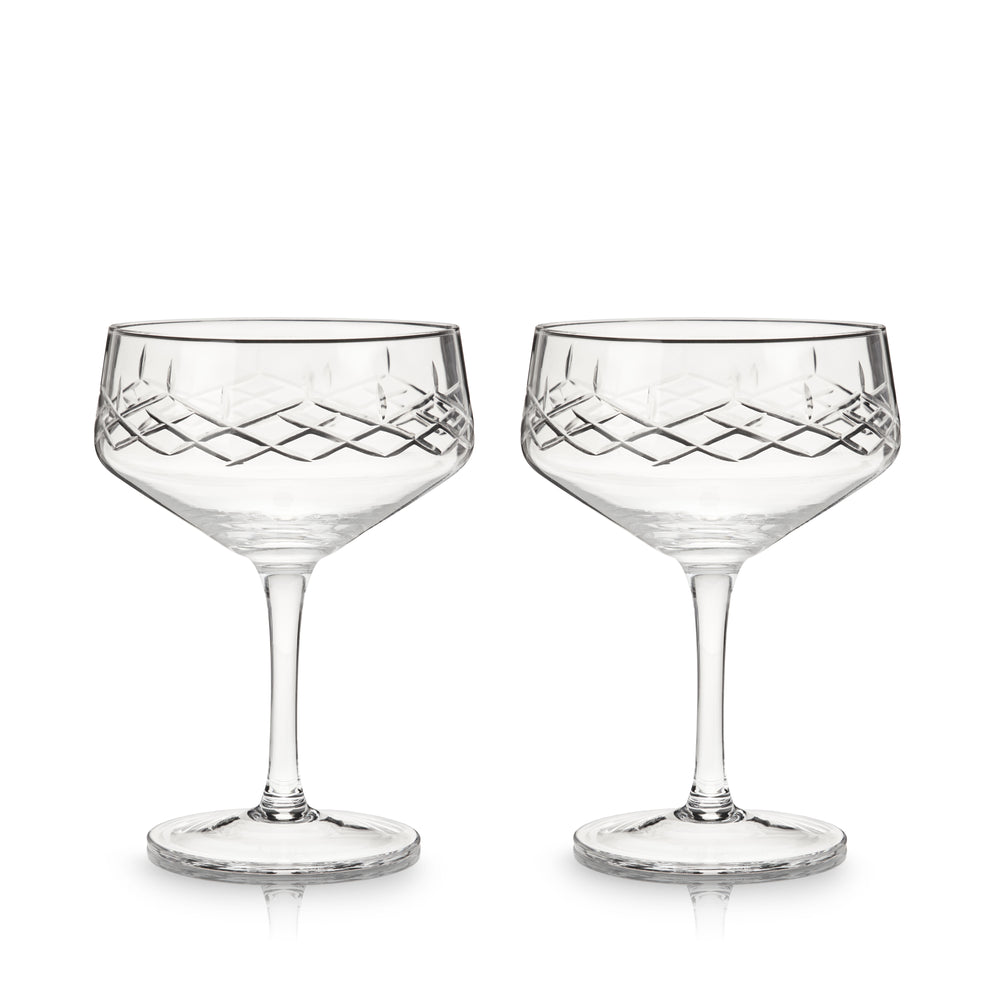 Made from stunning lead-free crystal, our flawlessly crafted coupe glasses have an elegant stem and angled bowl with delicate cross-hatch etchings so you can serve cocktails in style.