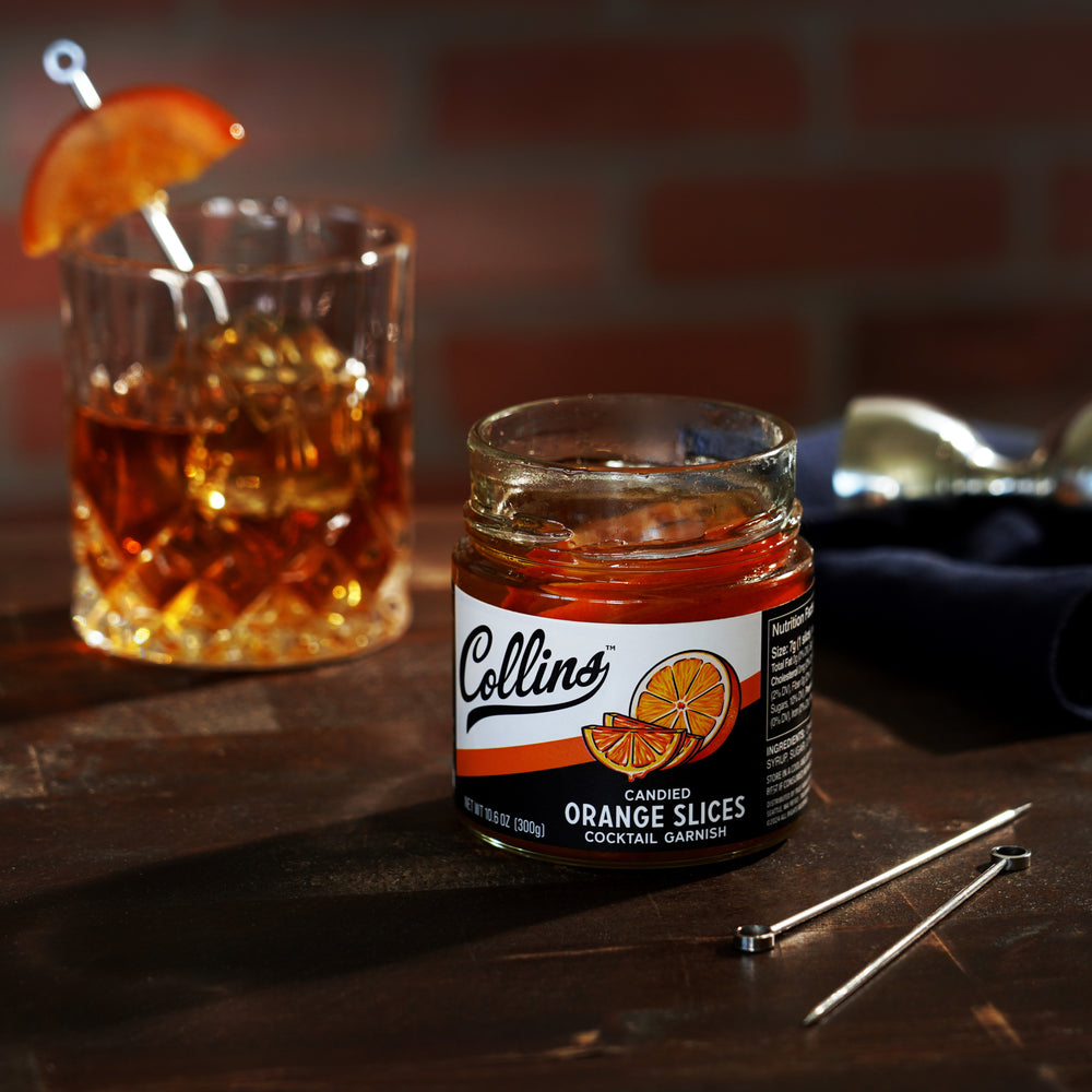 Collins Candied Orange Slices are sweet, tangy, and perfect garnishes for Old Fashioneds and other cocktails. These delicious orange slices make an elegant garnish—keep them on hand so you can always be ready to shake up a quality drink.